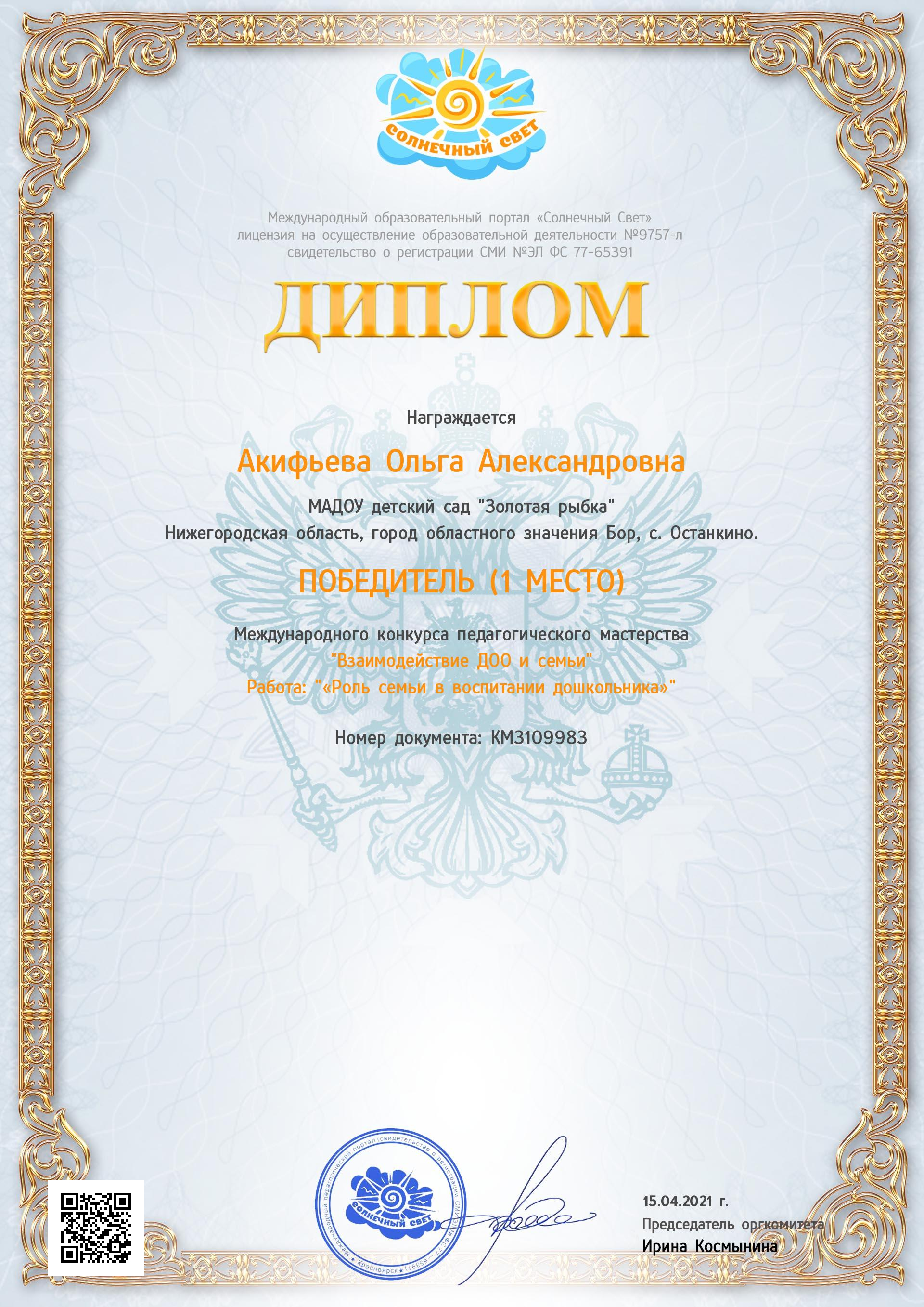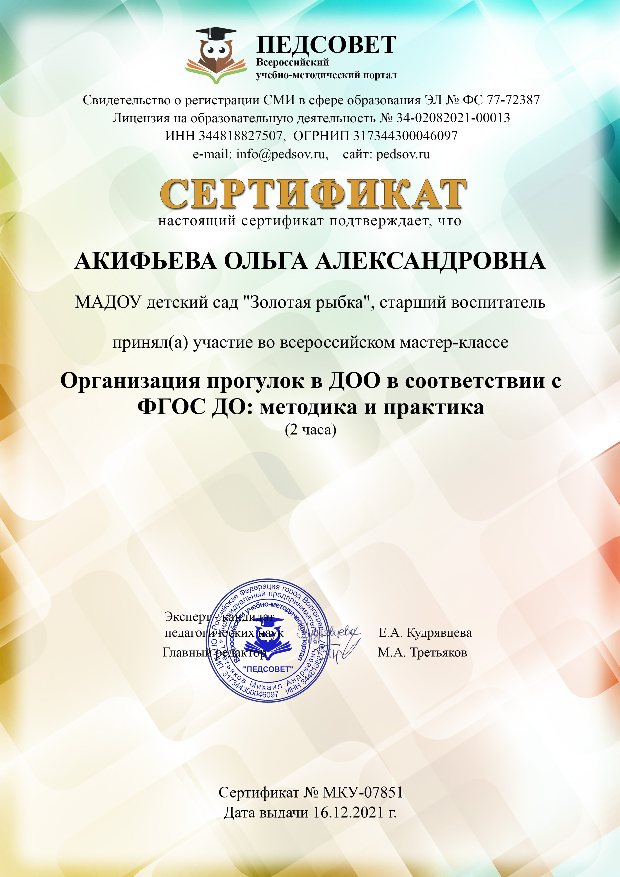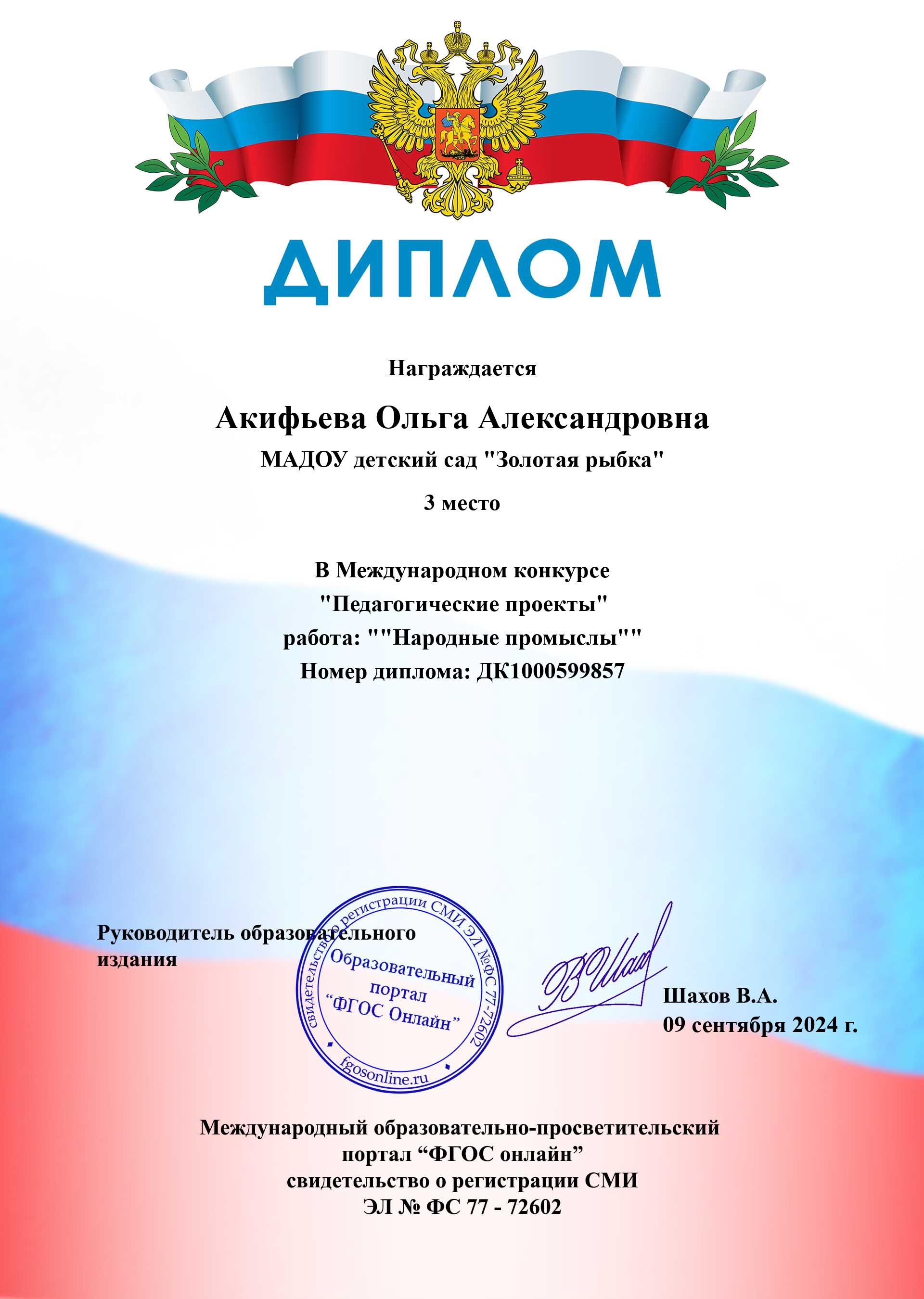 ФИО: Акифьева Ольга Александровна
