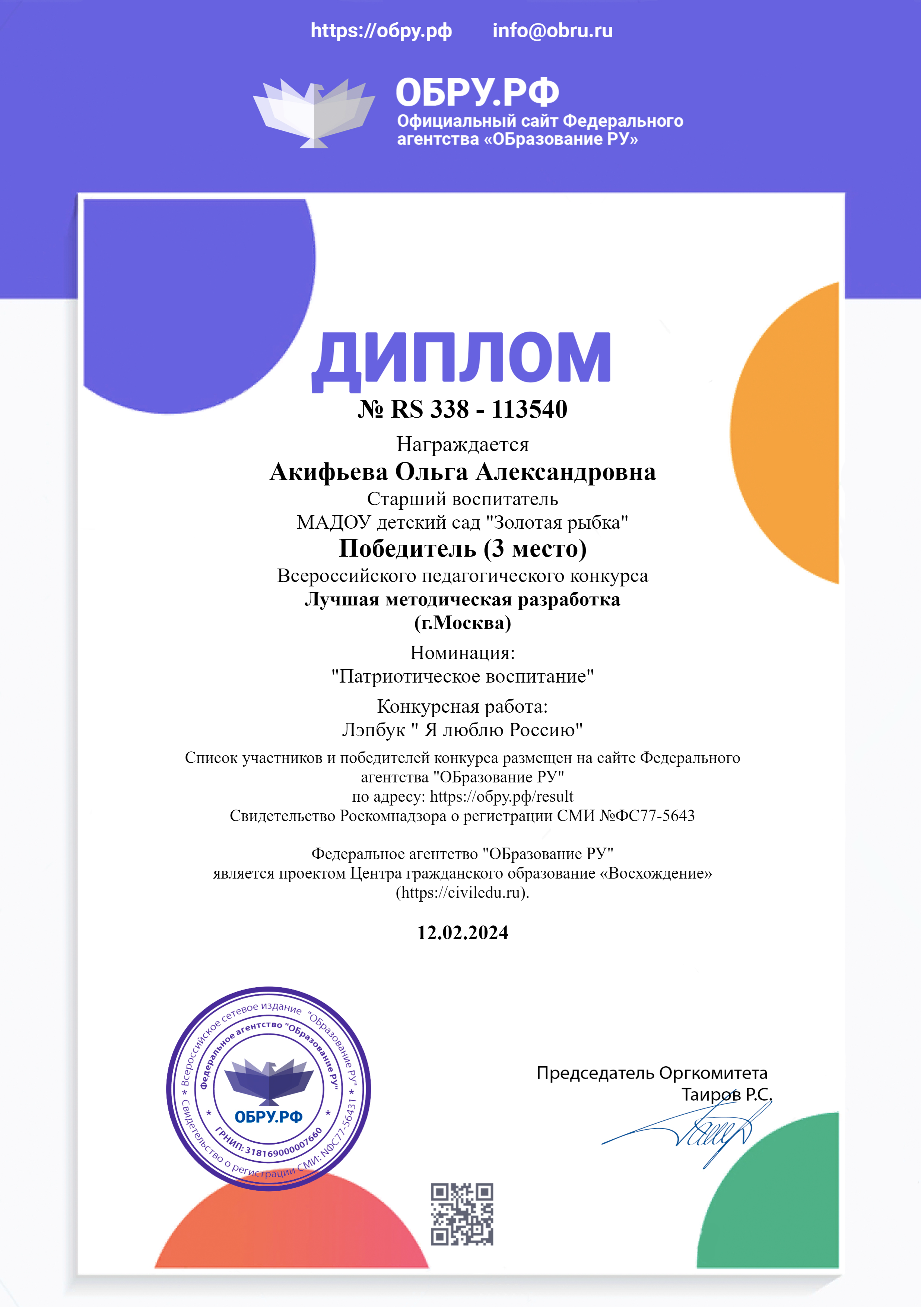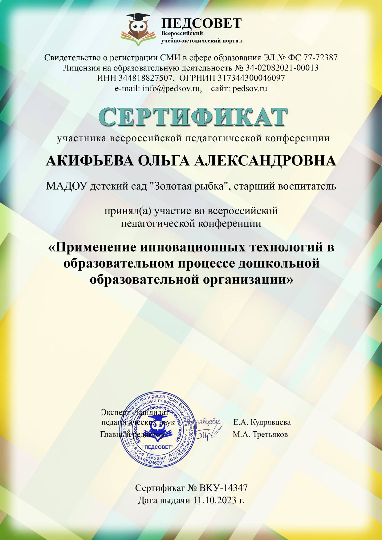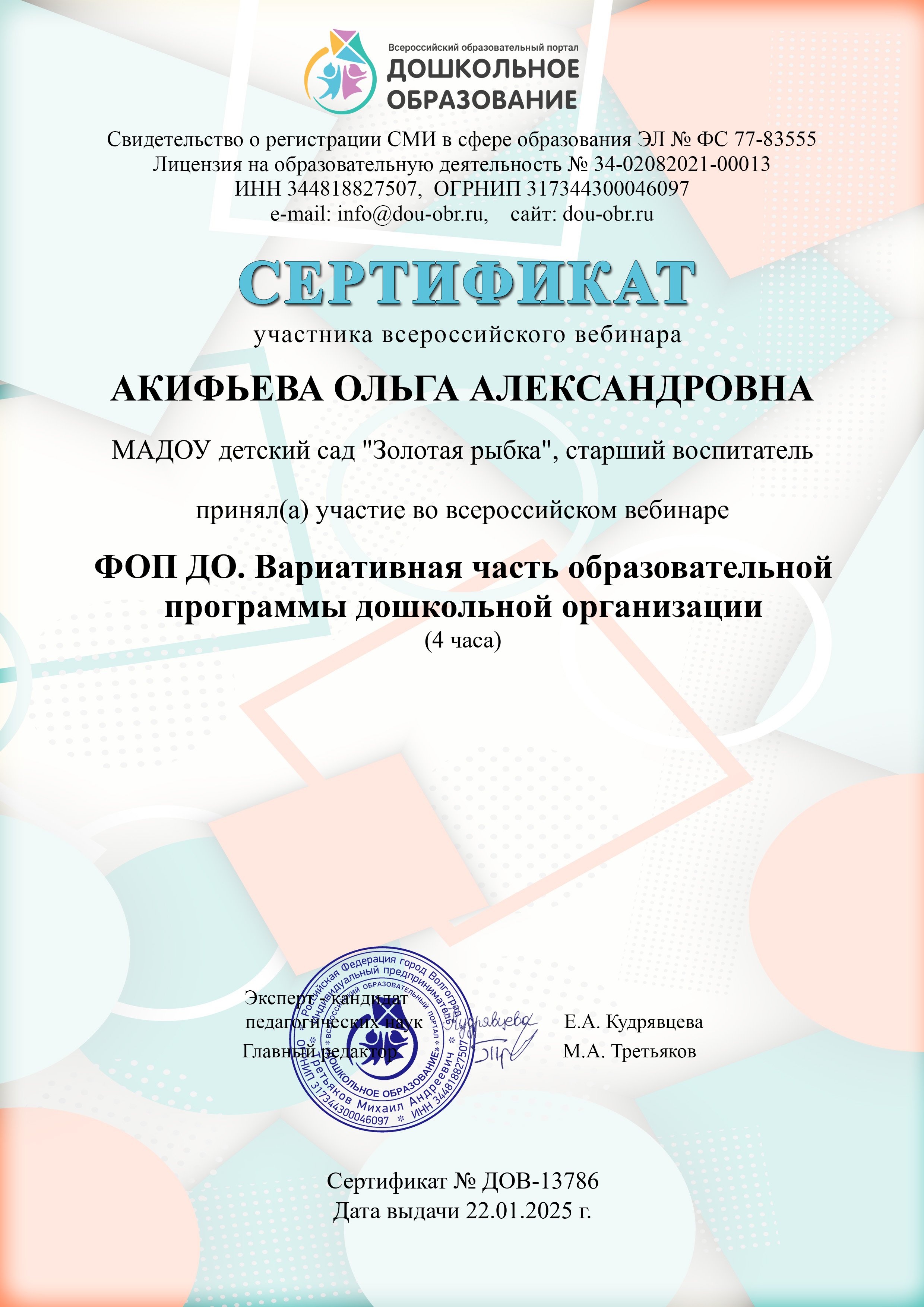 ФИО: Акифьева Ольга Александровна