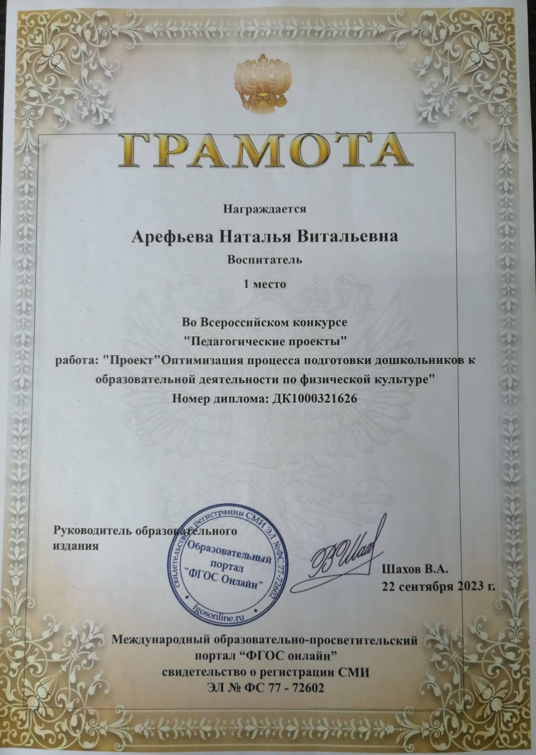 ФИО: Арефьева Наталья Витальевна