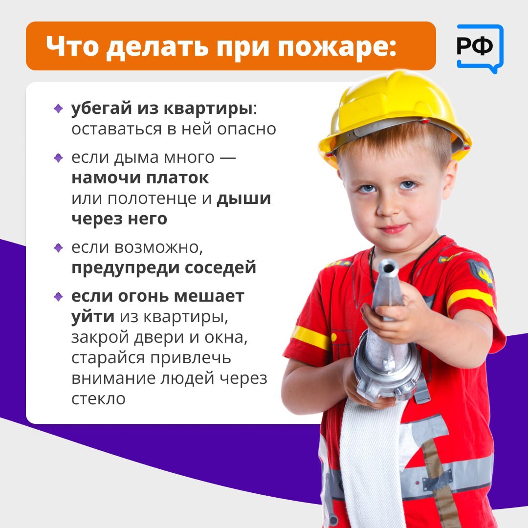 - предупредить о пожаре соседей, если необходимо, они помогут ребенку вызвать пожарных;